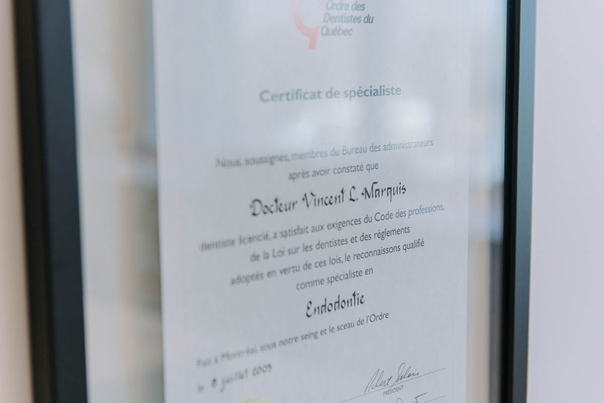 Tout comme votre dentiste, l’endodontiste a complété une formation universitaire de 4 ou 5 ans en médecine dentaire. Une formation supplémentaire de 2 ou 3 ans est ensuite requise pour devenir spécialiste en endodontie. L’endodontiste se spécialise dans les pathologies et les traitements affectant l’intérieur de la dent, soit la pulpe dentaire. Il est en mesure d’identifier certaines causes des douleurs dentaires et procéder aux traitements indiqués pour y remédier.